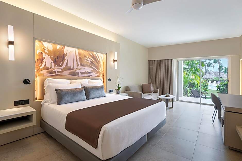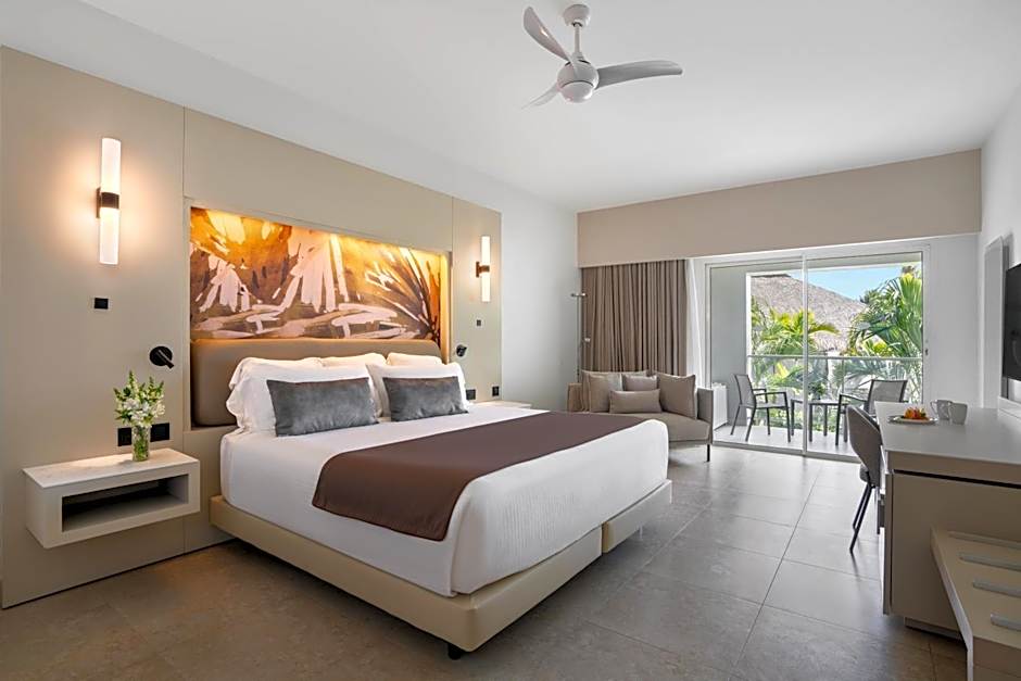 The Xhale Club Junior Suite with Pool View features a furnished balcony or terrace with a hot tub and a nightly turn-down service, in addition to views of the tropical gardens. The elegant décor and luxurious amenities set the mood.
